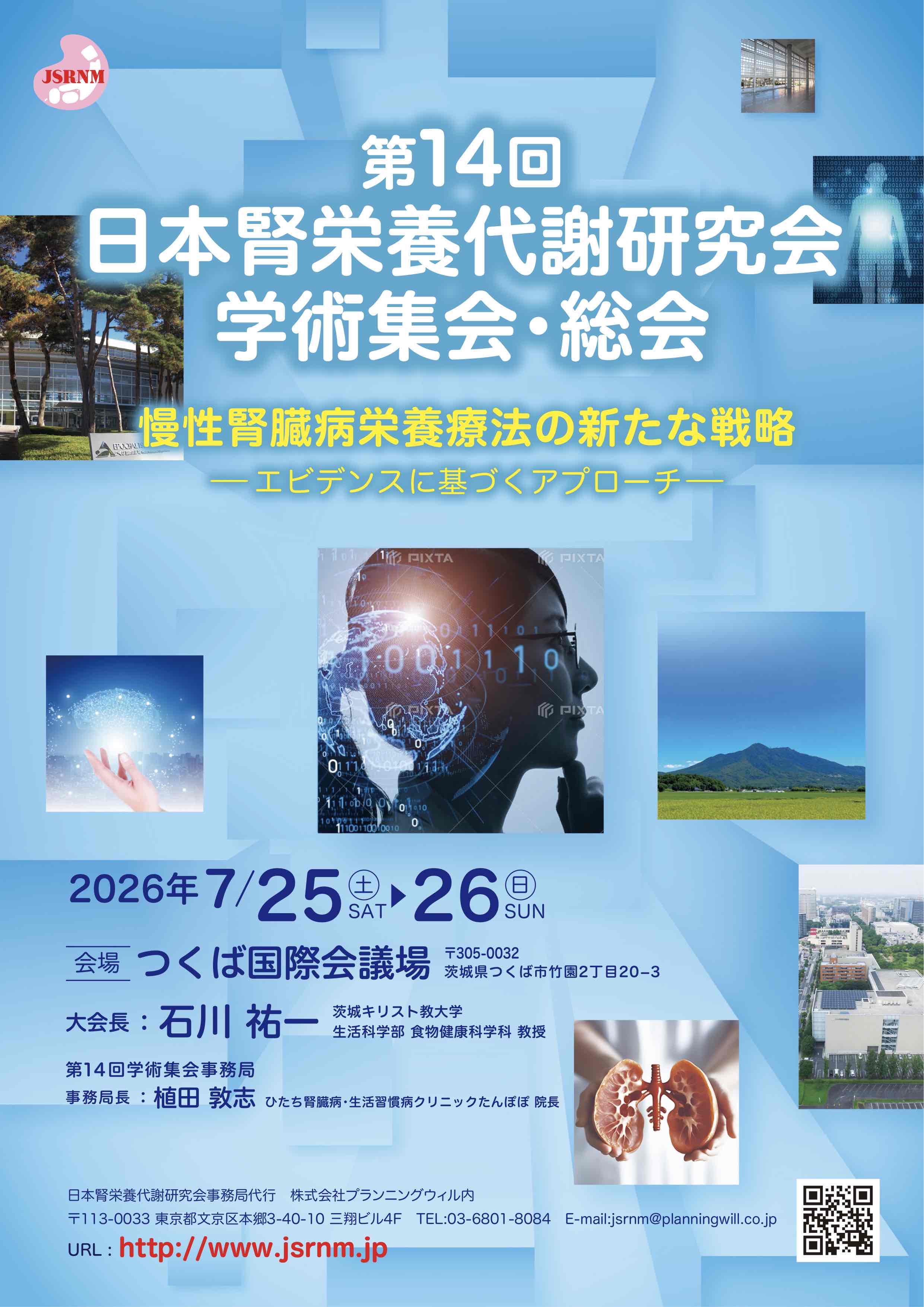 1.テーマ 慢性腎臓病栄養療法の新たな戦略-エビデンスに基づくアプローチ-2.会期 2026年7月25日(土)・26日(日)3.会場 つくば国際会議場(〒305-0032 茨城県つくば市竹園2丁目20-3) 4. 受講料 日本腎栄養代謝研究会会員・非会員 4,000円 学生 1,000円※お申し込みは≪研修会ページ≫の受講申込書をFAX・郵送またはメールでお送りください。