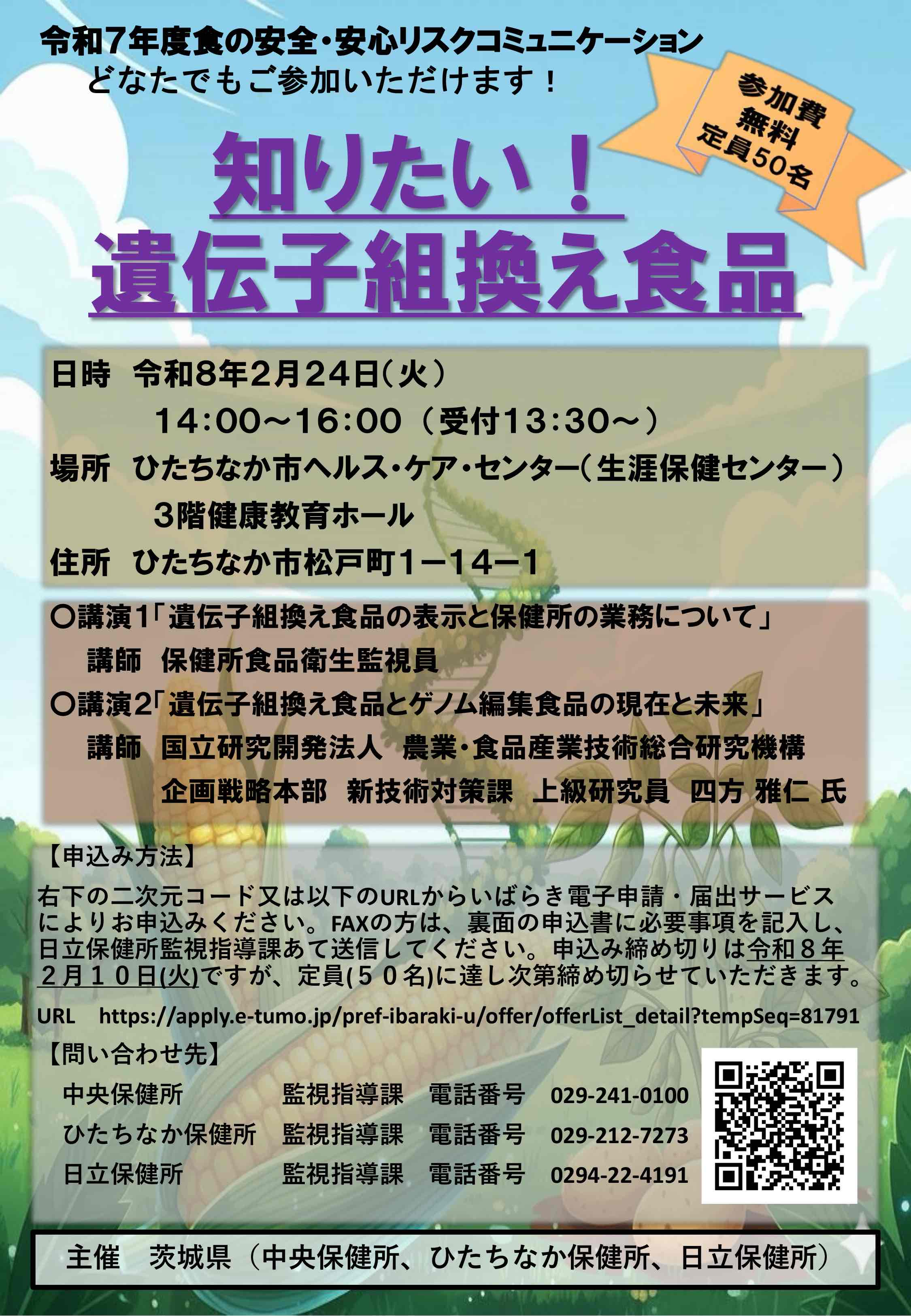 ひたちなか保健所 様より令和7年度食の安全・安心リスクコミュニケーションのお知らせです。